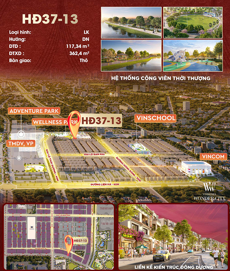 Cơ hội sở hữu liền kề đẹp nhất Vinhomes Wonder City Đan Phượng – GIÁ TỐT HIẾM CÓ